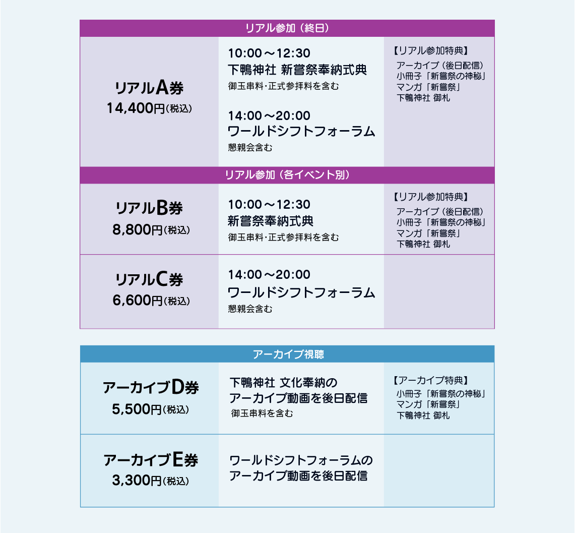 | リアルA券 新嘗祭奉納式典+ワールドシフトフォーラム2025 |