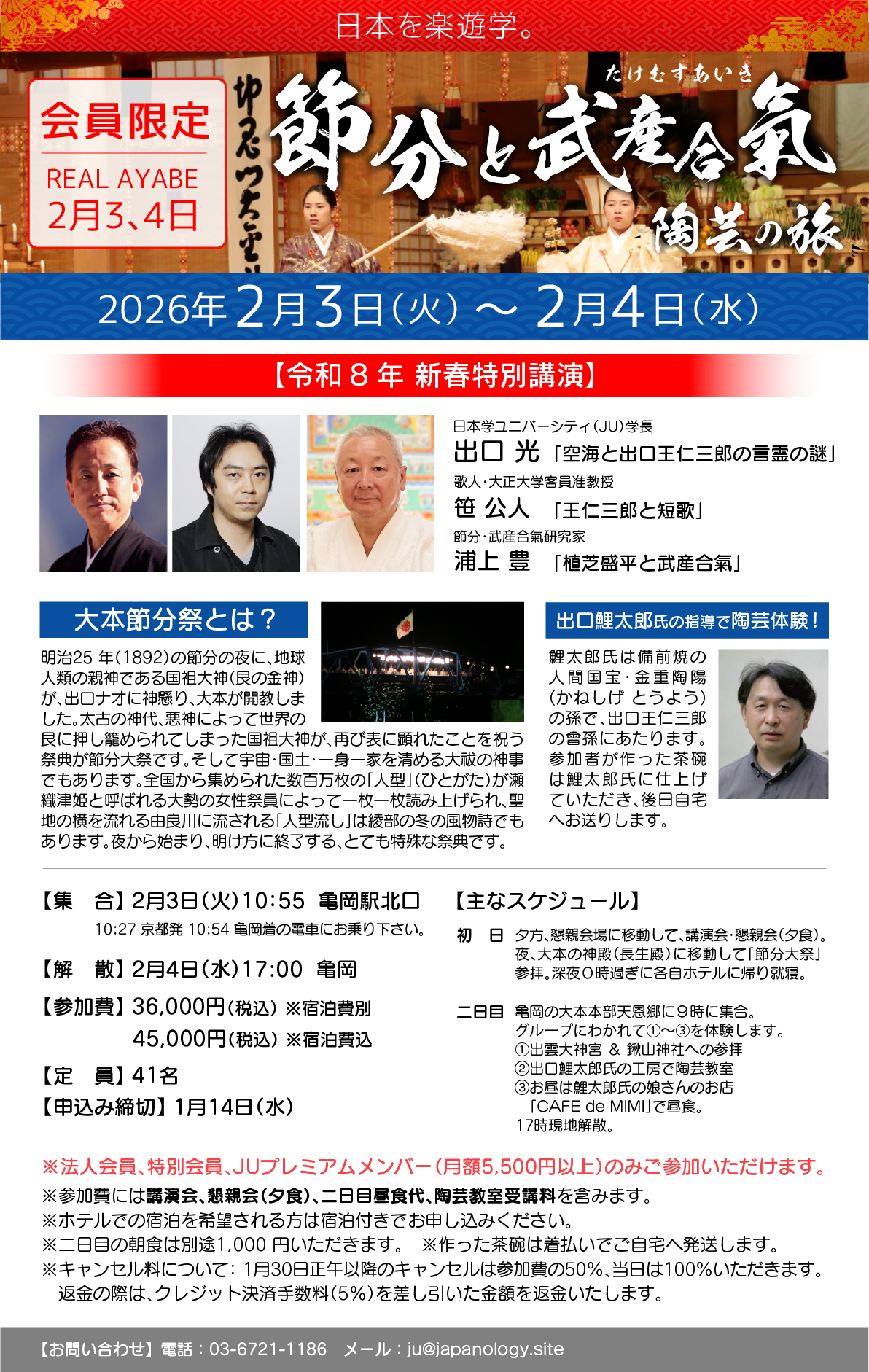 ※ 午後に講演会を行い、夜に節分祭本番を迎える行程です。