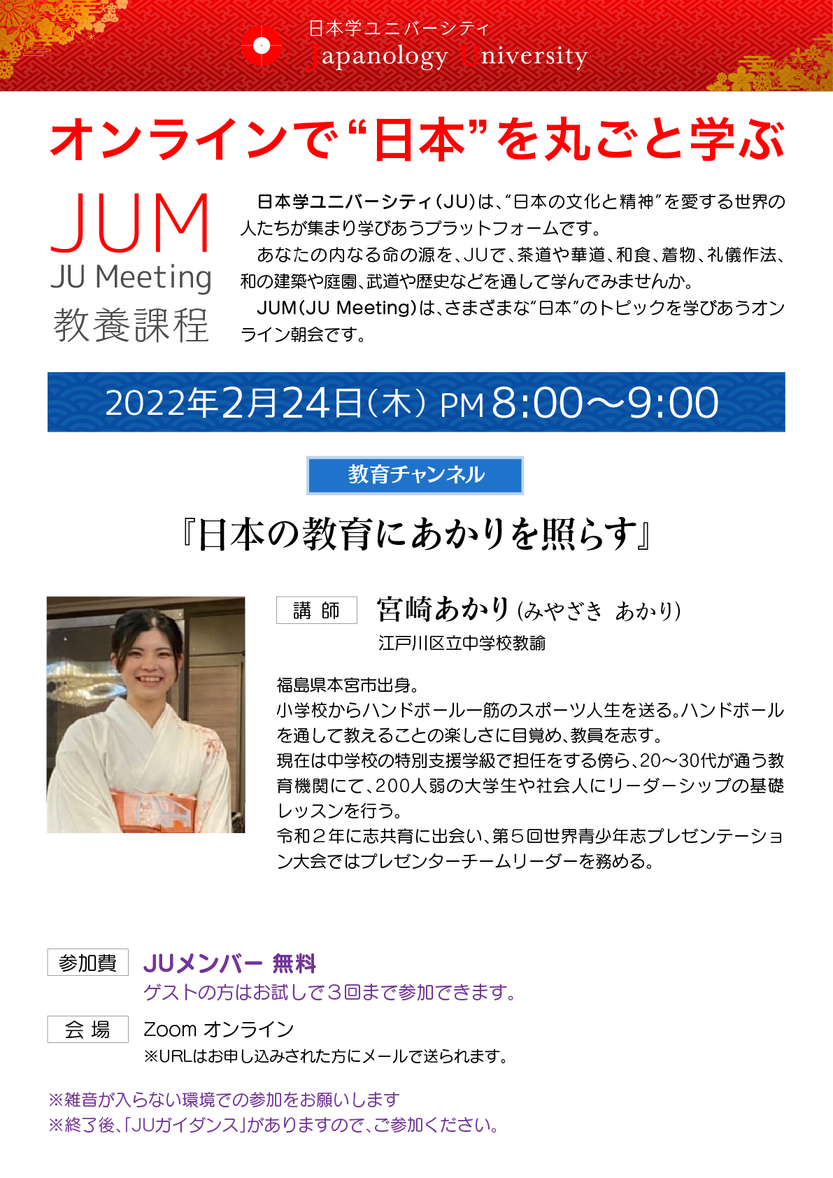 0224 JUM「日本の教育にあかりを照らす」/宮崎あかり 受付終了