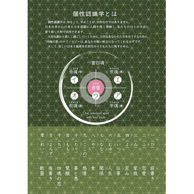 四魂甚句は、個性認識学を学んだ人たちにしか理解できない味わい深い内容を、人生のさまざまなシーンを使って、お互いの違いを楽しみながら、深く学べるように創りました。
