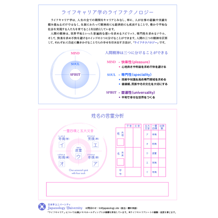 ※言霊学講座を受講中/受講後の方のみ使用できます。※ライフキャリアシート KOTOTAMA BASIC EDITION は50枚セットでの販売のみとなります。